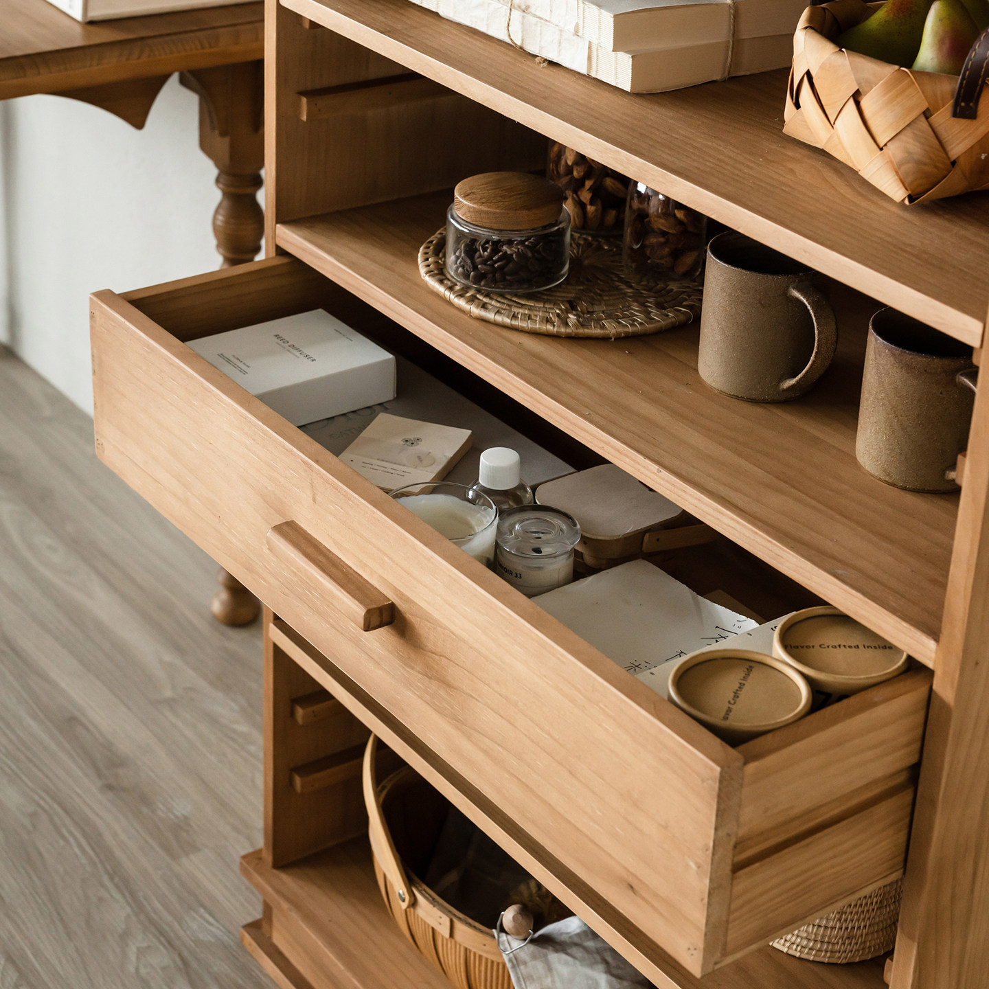 润家家居实木可移动层板展示柜原木风简约搁板收纳柜落地松木书柜