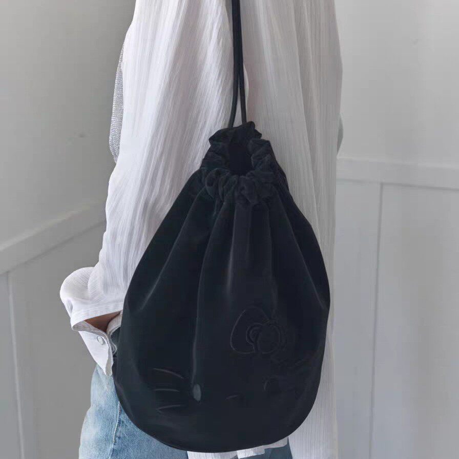 丝绒水桶双肩包斜挎包单肩包大容量猫包 韩国HelloKitty联名款由
