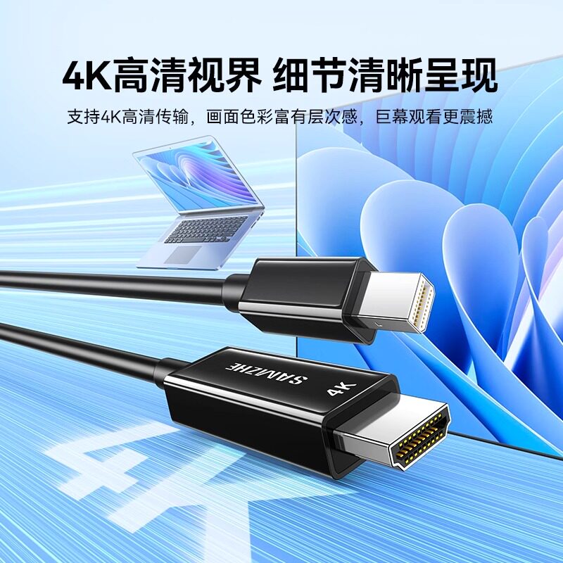 山泽minidp转hdmi线4k家用连接显示器displayport迷你转接头外接