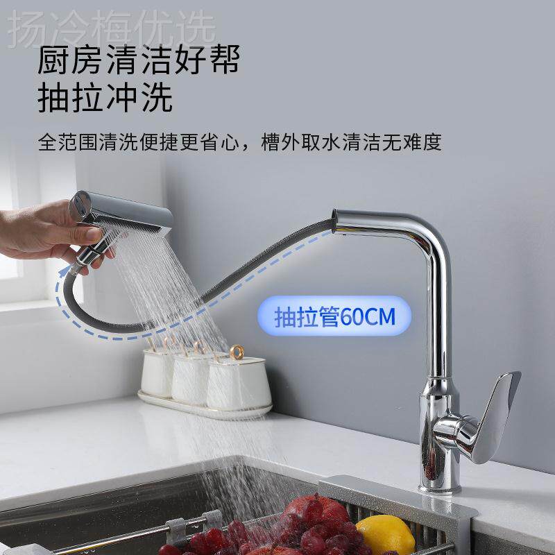 厨房7921飞雨水龙头热洗菜盆电向镀万伸缩头家用洗碗池龙防 抽拉式
