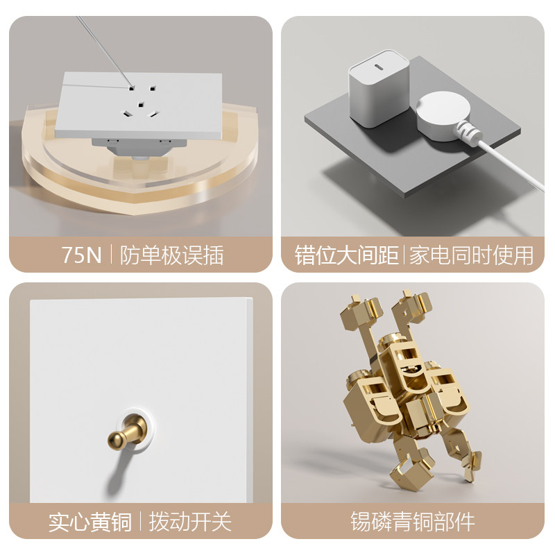 为您提供商品黑色86型超薄肤感黄铜拨杆开关面板家用墙壁五孔插座民宿酒店复古的详细介绍,