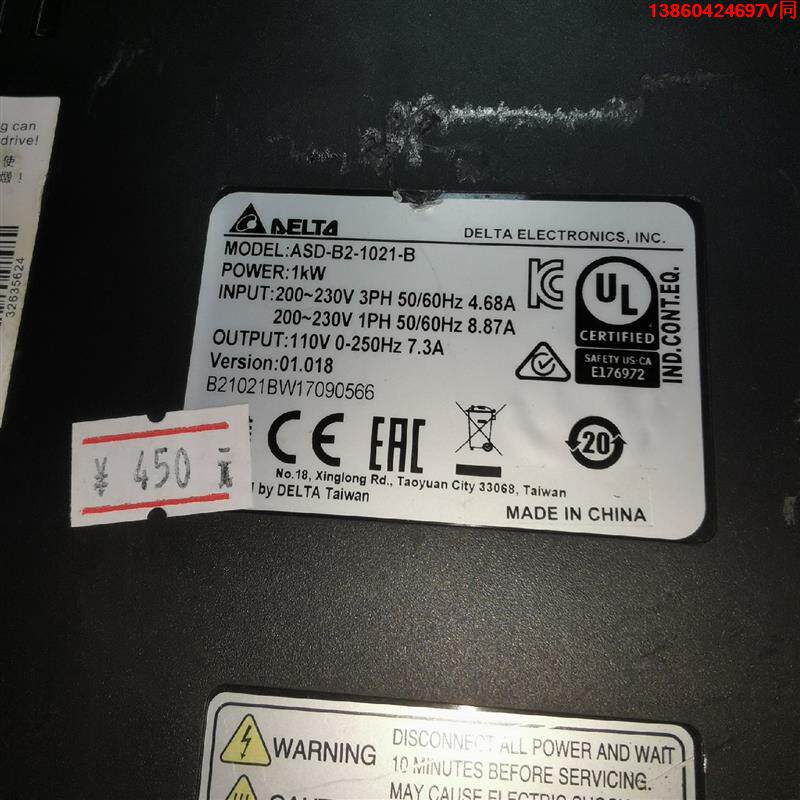 1021 询价购 台达伺服ASD G213 B驱动器ECMA