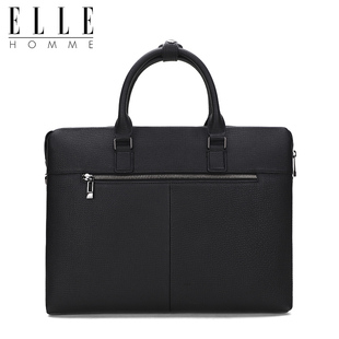 ELLE 公文包轻奢斜跨手提包 HOMME真皮单肩包男包头层牛皮商务横款由
