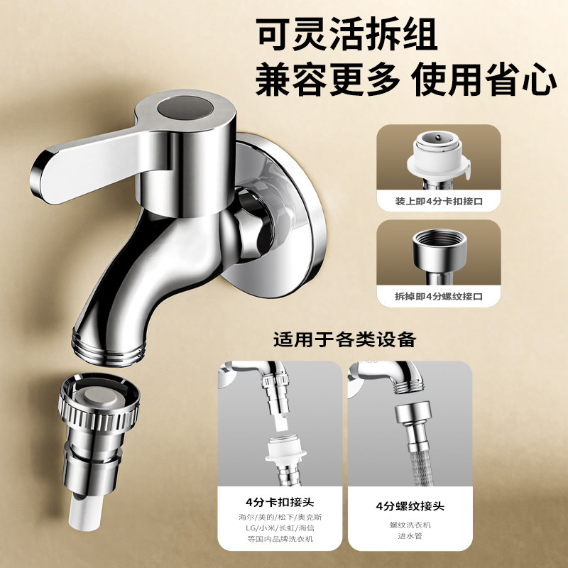 304不锈钢洗衣机水龙头家用拖把池快开加长4分通用单冷多功能龙头