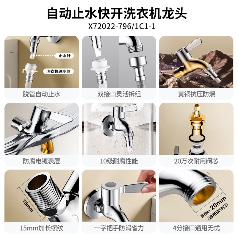 为您提供商品九牧官方旗舰店卫浴水龙头洗衣机专用家用拖把池单冷加长4分快开的详细介绍,