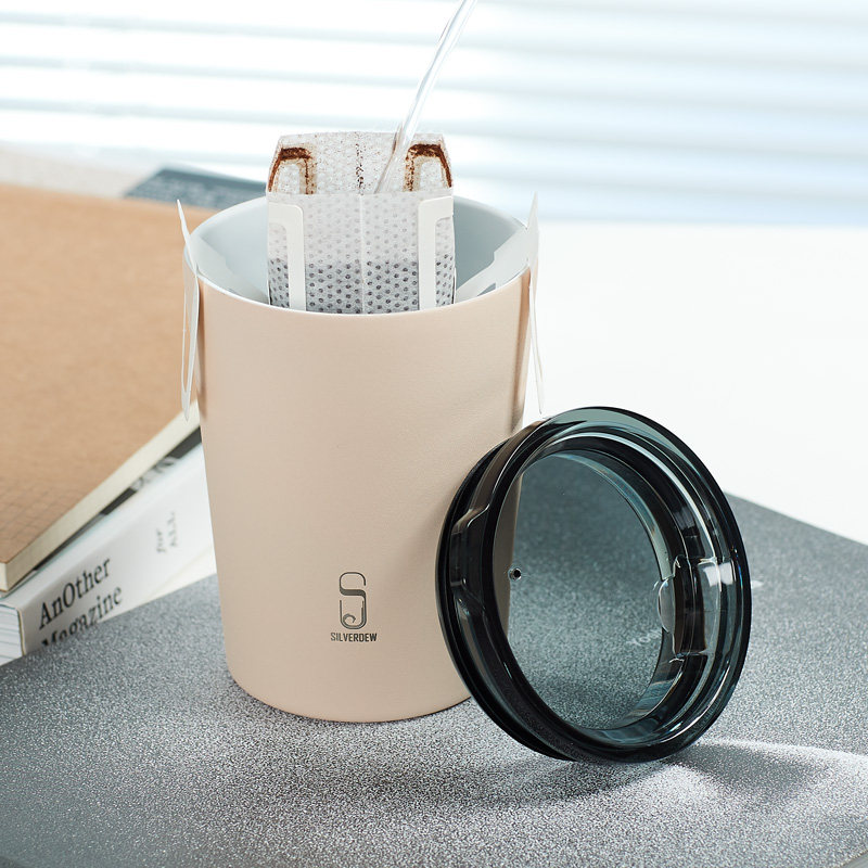 诗芙迪陶瓷内胆咖啡杯保温随行杯马克杯吸管杯不锈钢直饮带盖水杯