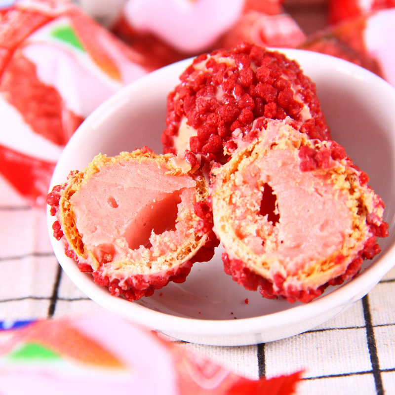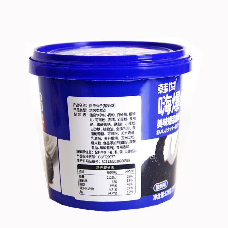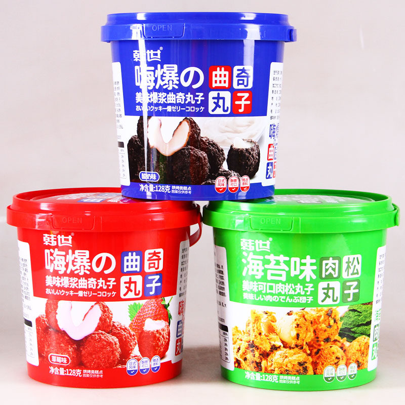 韩世嗨爆曲奇128g夹心脆爆浆草莓酸奶小丸子桶装