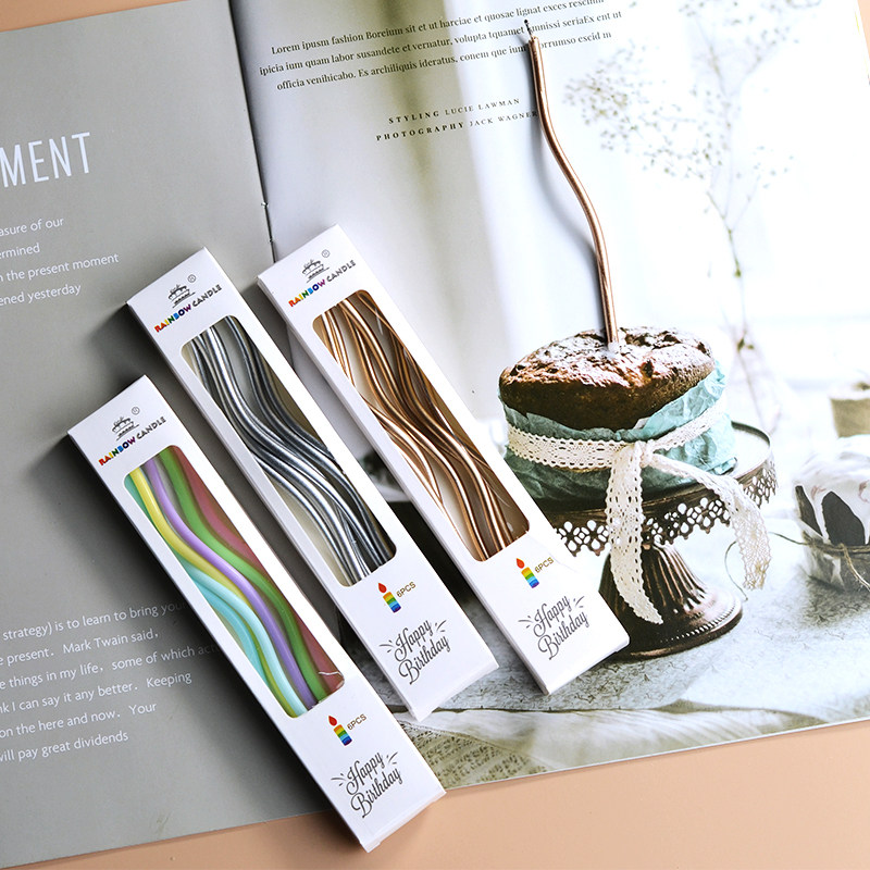 饰 高档黑白洒金蜡烛浪漫派对无烟镀金长条螺旋曲线生日蜡烛烘焙装