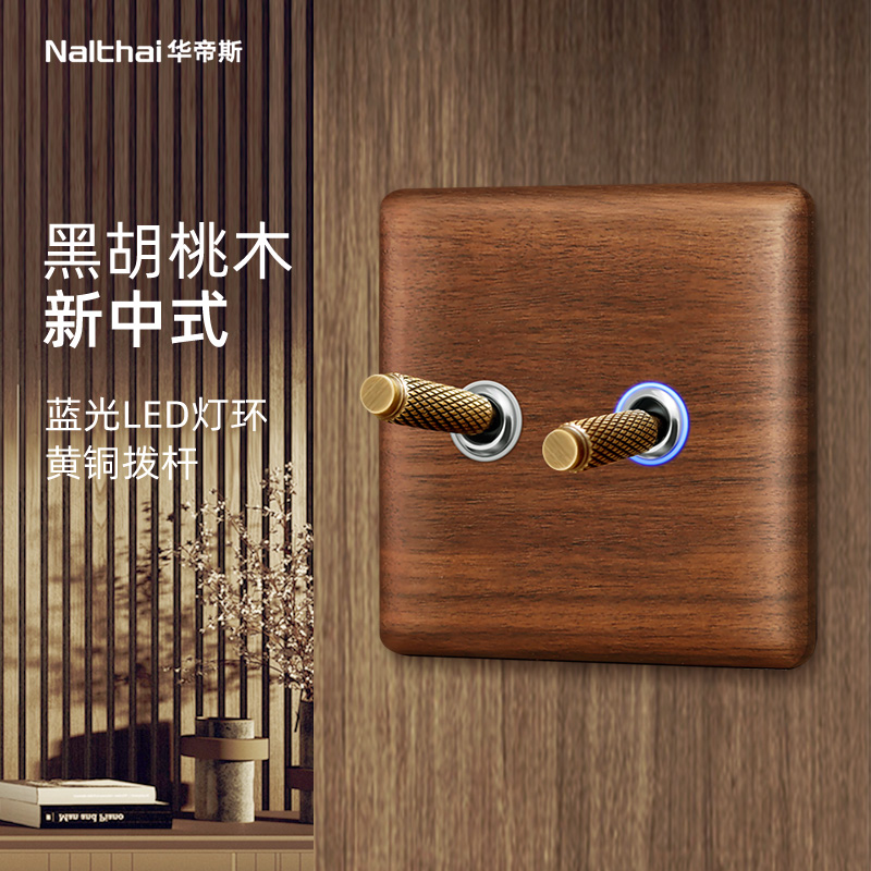 为您提供商品美式 复古86民宿开关 黑胡桃木开关插座面板黄铜拨杆仿古实木新中式的详细介绍,