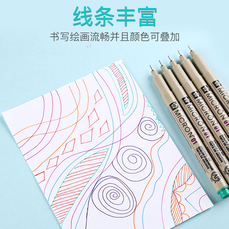 日本樱花彩色防水针管笔0.05 手绘水彩描边笔 漫画设计草图勾线笔