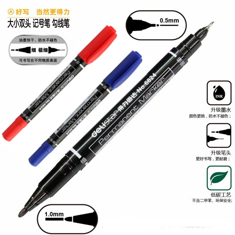 得力6824油性记号笔小双头儿童涂鸦绘画粗细勾线笔描边CD马克笔由