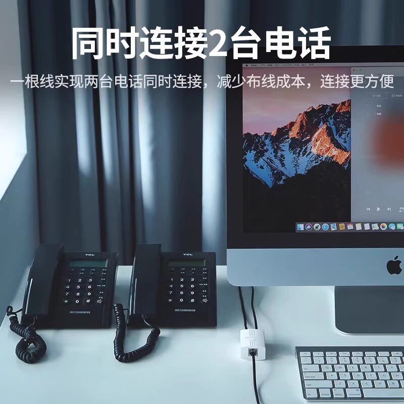 绿联电话一分二分线器连转接线家用座机直通RJ11双三通延长对接头由