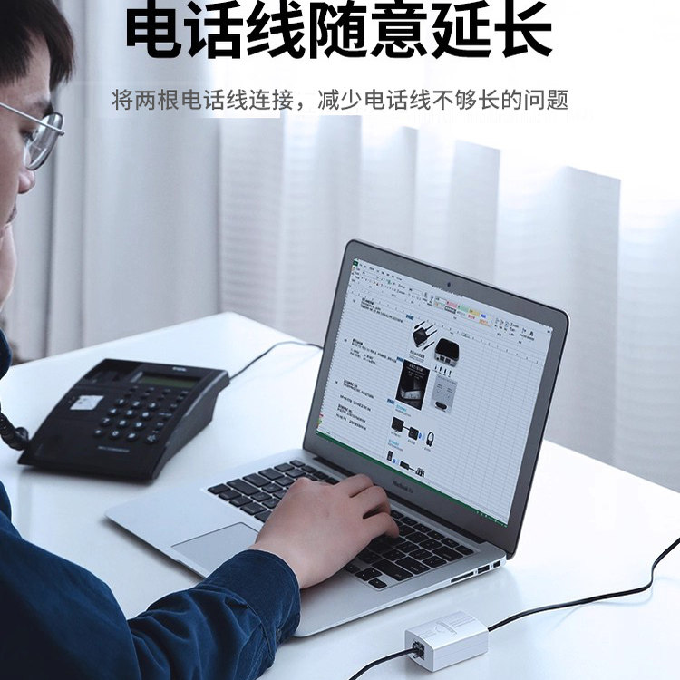 绿联电话一分二分线器连转接线家用座机直通RJ11双三通延长对接头