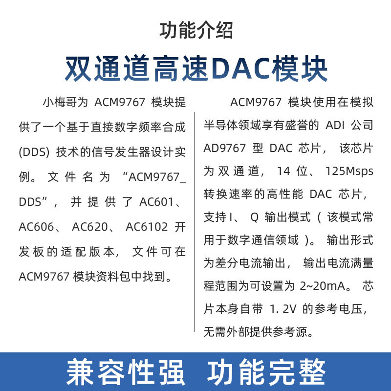 为您提供商品配FPGA开发板 兼容DE2 AD9767高速双通道DAC模块 小梅哥FPGA的详细介绍,