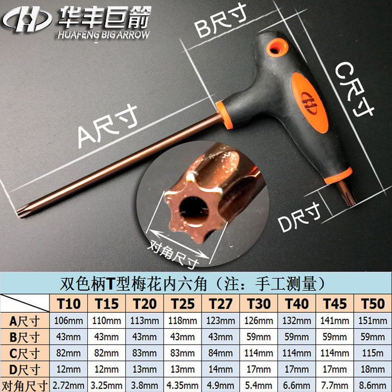 为您提供商品华丰巨箭T型梅花内六角扳手花健内6花扳手t10T20t30t50梅花内6角的详细介绍,