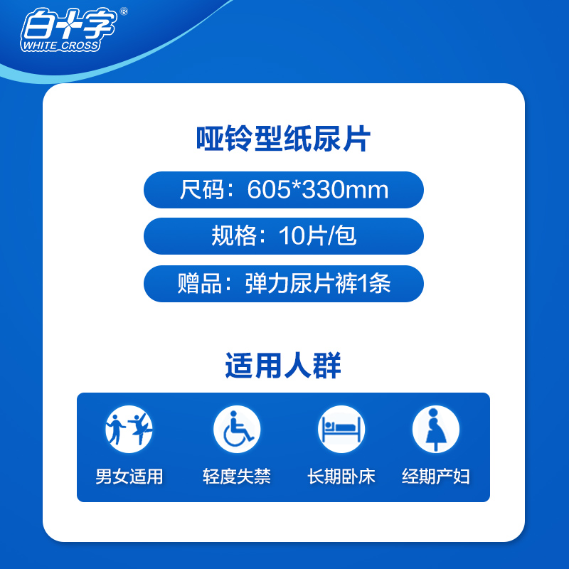 白十字成人纸尿片605 一次性尿不湿非纸尿裤 男女大码 330mm80片由