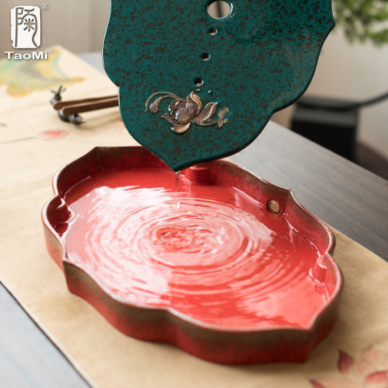 为您提供商品茶托盘 陶迷家用简约陶瓷大号茶盘创意浮雕荷花排水蓄水两用盘中式的详细介绍,