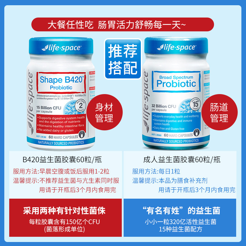 space益倍适B420益生菌成人塑身控制体重肠道健康60粒 澳洲life由