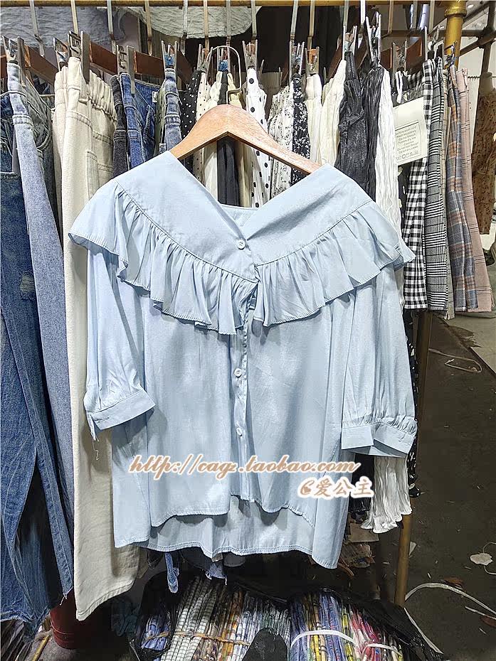 2019春夏新款 雪纺衫 衬衫 上衣 韩休闲淑女宽边大荷叶边木耳短袖