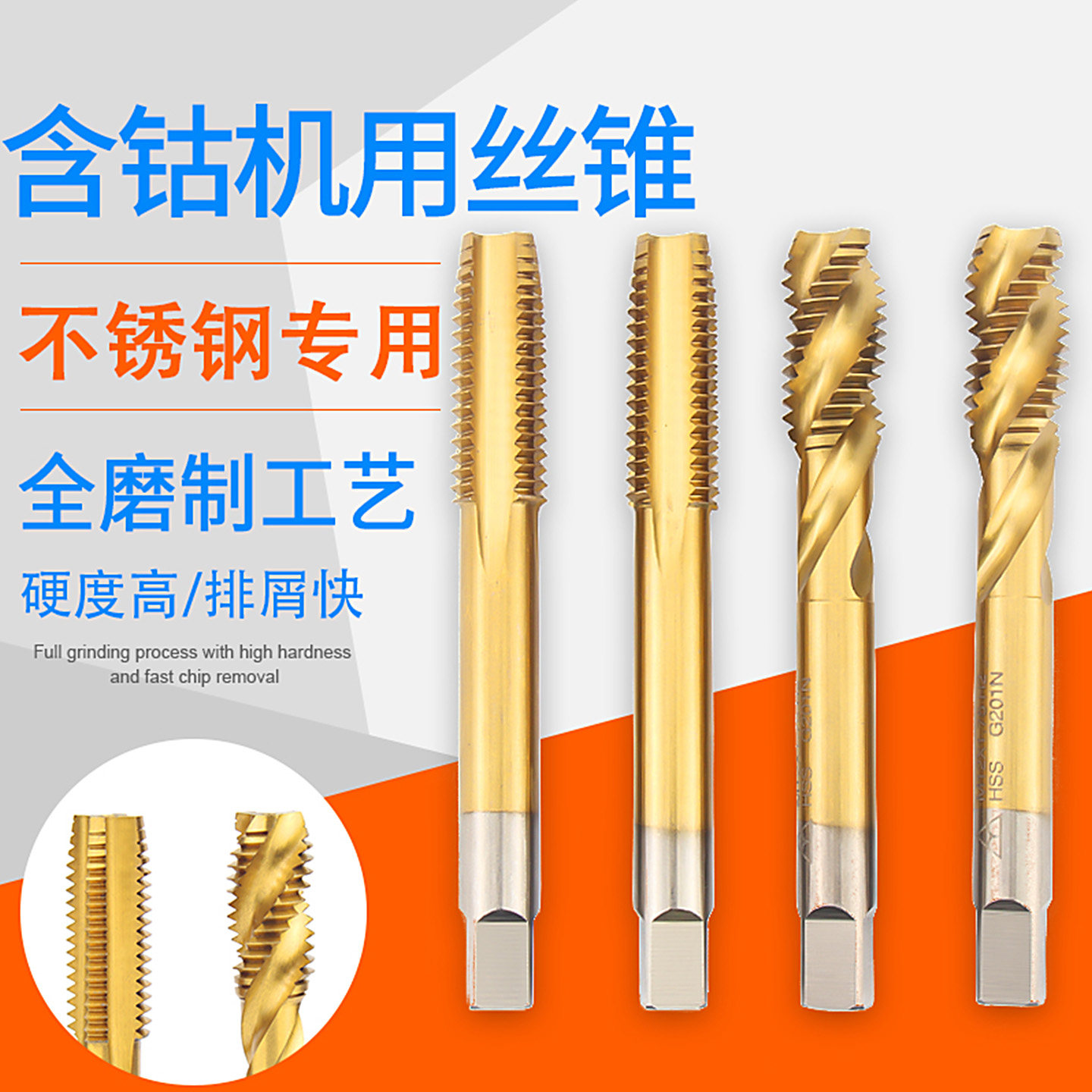 金超直槽螺旋机用含钴螺纹不锈钢专用丝锥机攻牙钻头m2m3m4m5m6m8由