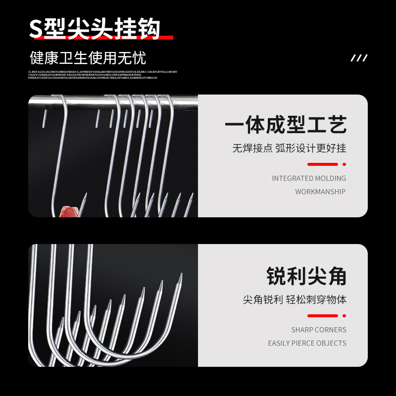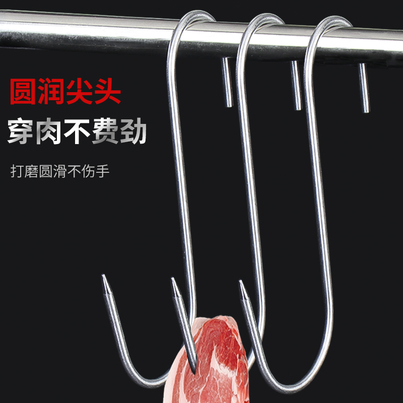 金超大号加粗S型晒腊肉挂钩实心不锈钢挂猪肉烤鸭香肠勾挂肉S钩子