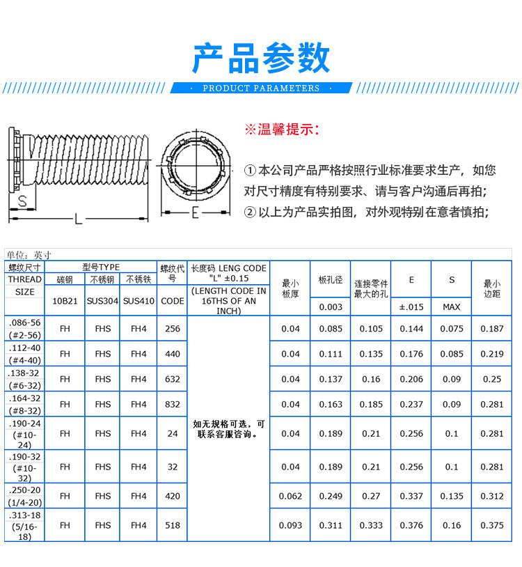 为您提供商品632 英制不锈钢平头美制压铆螺钉螺丝铆钉FHS 256 440 024UNC 832的详细介绍,