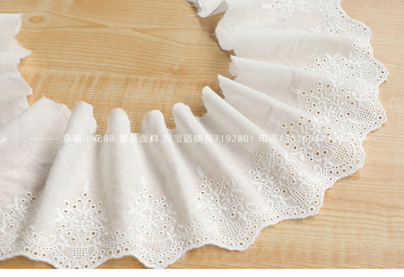 为您提供商品H2白色棉布蕾丝刺绣镂空花边服装 单边条幅12CM宽 辅料的详细介绍,