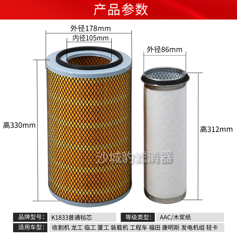 为您提供商品8收割机9龙工装 载机空滤 挖掘机75 K1833空气滤芯适用新源远山轮式的详细介绍,