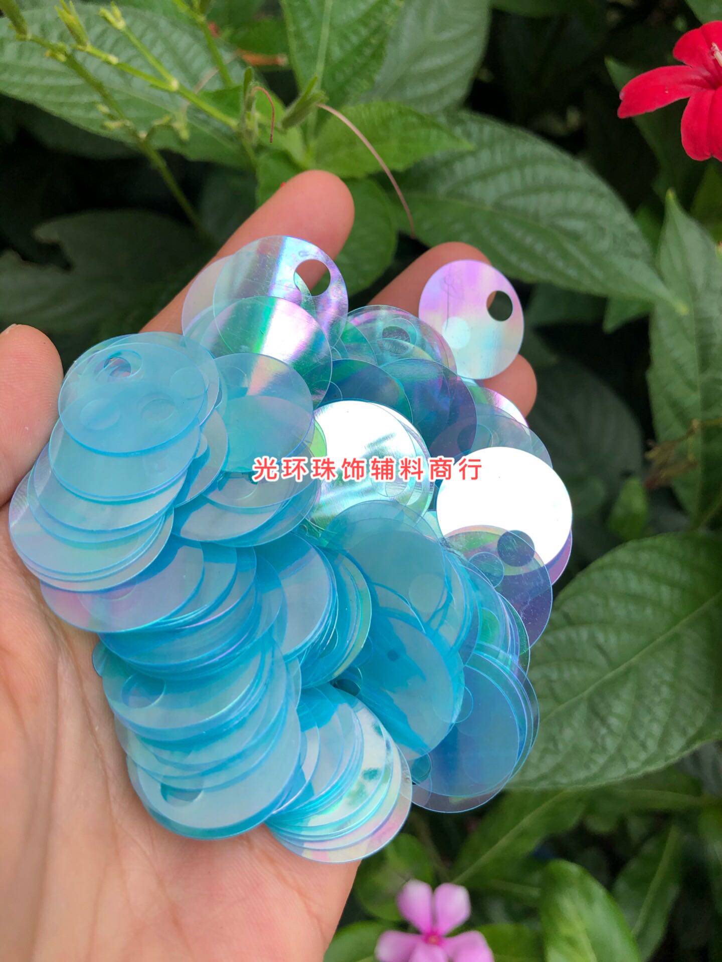 DIY珠片2cm圆形大孔幻彩单孔粉蓝色亮片编织钩针包包闪片手工材料由