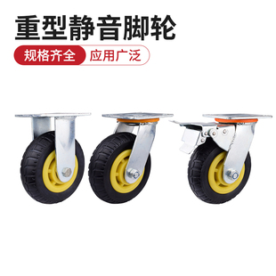 6寸万向轮轮子重型脚轮静音橡胶转向轮移动底座458平板手推车刹车