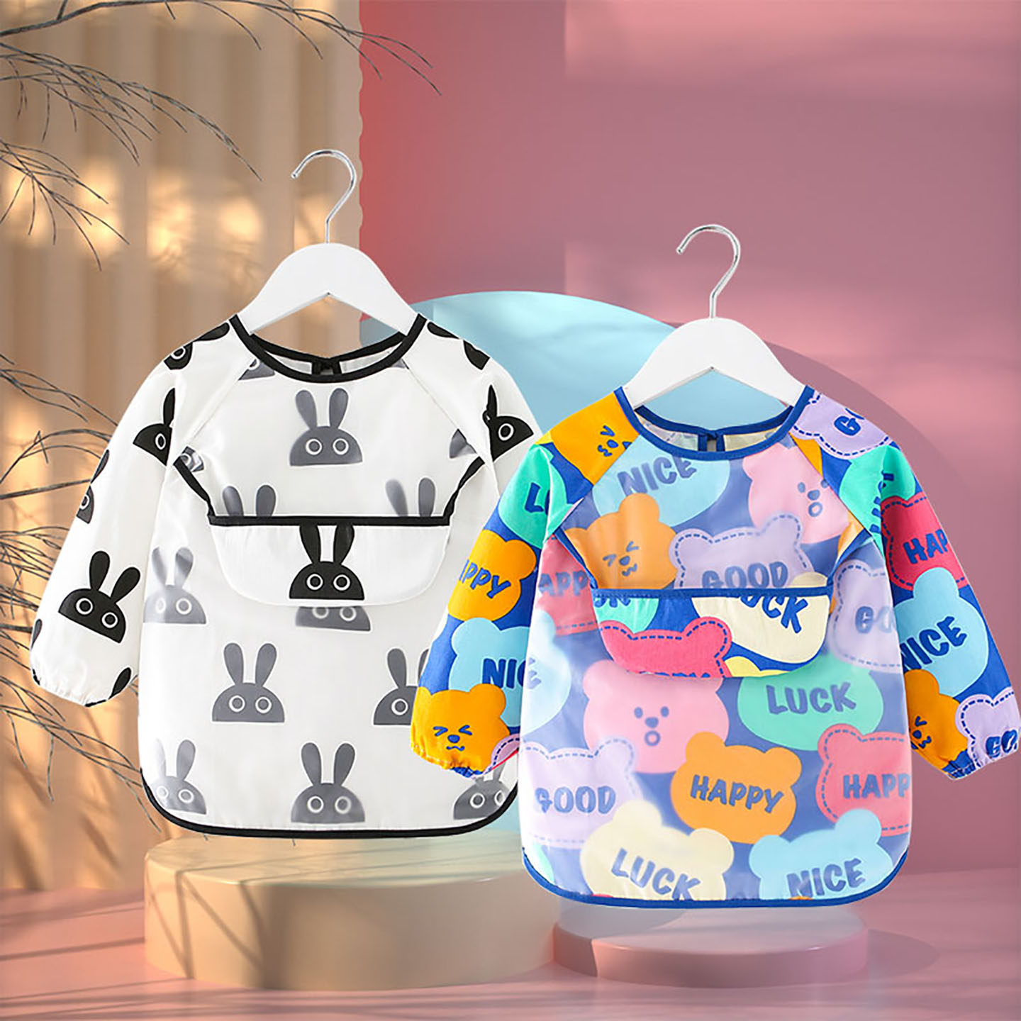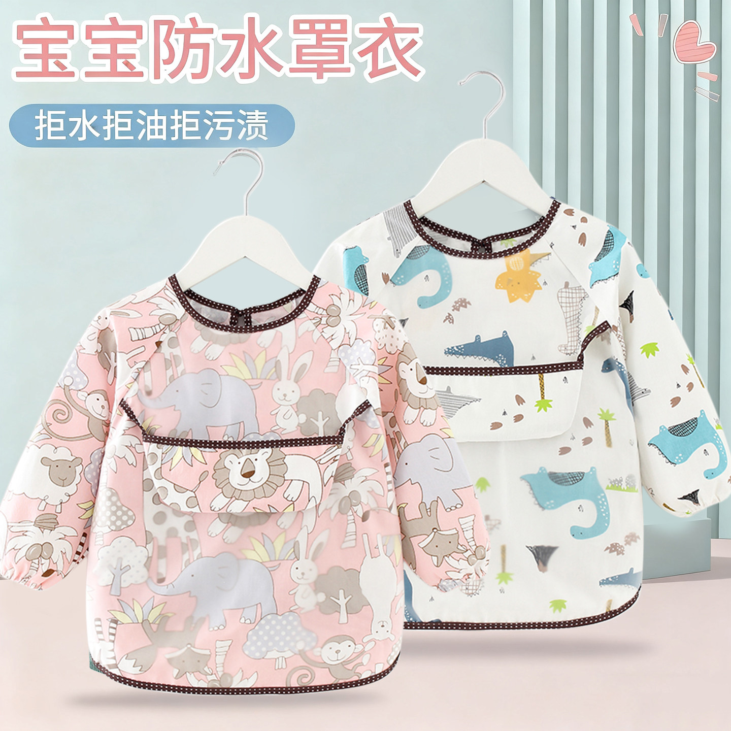 透气 儿童罩衣全棉防水宝宝吃饭衣男童女宝防脏反穿衣围裙护衣长袖