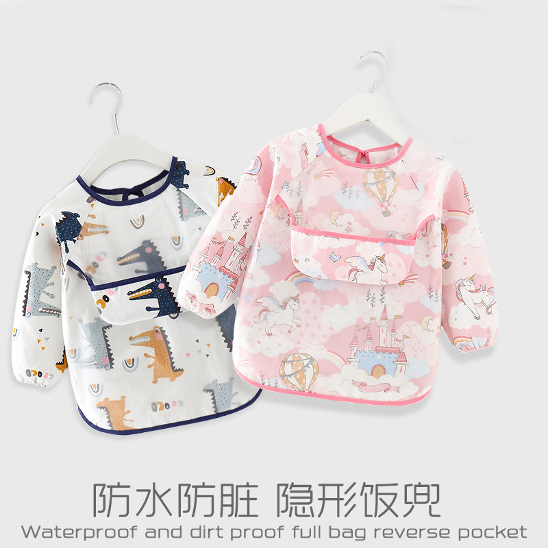 反穿护衣 宝宝吃饭罩衣围兜儿童围裙婴儿饭兜防水防脏男女辅食长袖