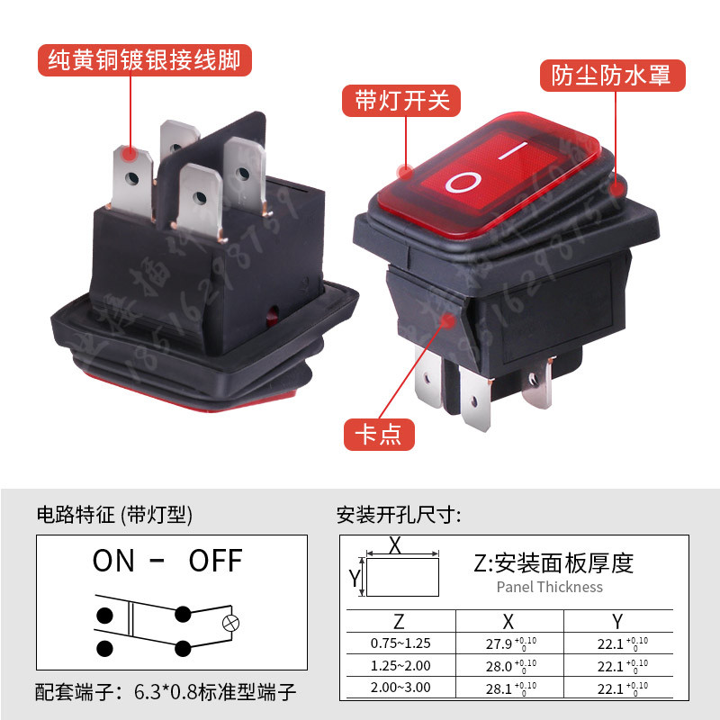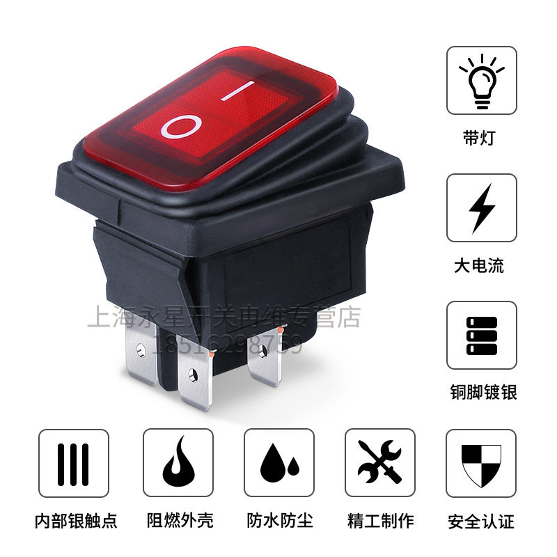 为您提供商品上开 21N翘板船形电源开关4脚2档 16A 250V 防水船型开关带灯KCD2的详细介绍,