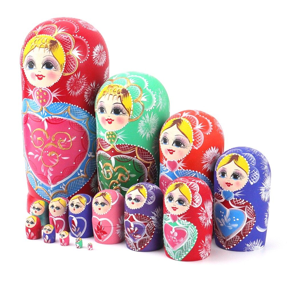 俄罗斯套娃15层红心风干椴木手工绘制儿童益智玩具节日礼物环保由