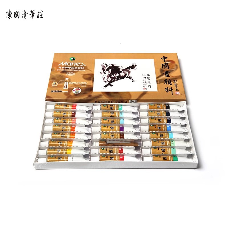 官方旗舰店马利中国画12色24色水墨画用品全套材料儿童小学生入门水彩马力玛丽 马利牌国画颜料初学者工具套装