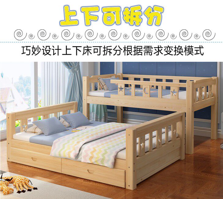 全实木子母床上下铺双层床高低床多功能组合儿童床上下床两层木床