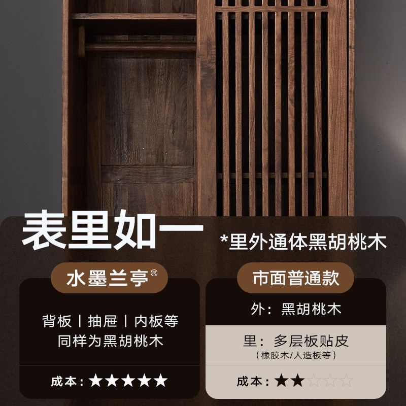 杭州上海北美黑胡桃原木实木全屋独立衣柜餐边柜酒柜家具床定制