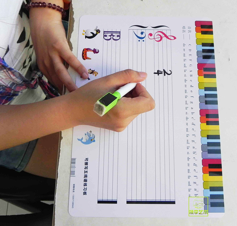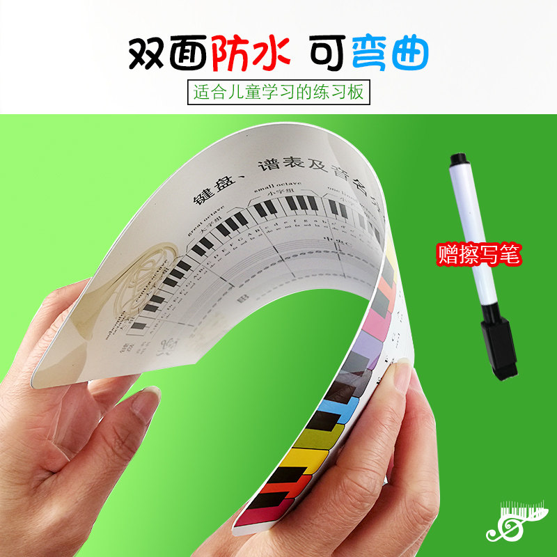 儿童学习音符可擦写五线谱练习板键盘谱表音名分组对照图配笔教具