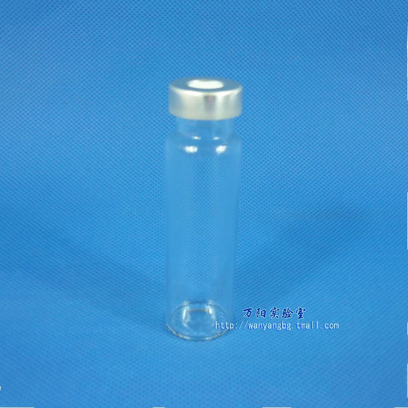 透明白棕色小玻璃色谱进样瓶 钳口顶空瓶 20ml 100套 银色开口铝盖PTFE特氟龙硅胶垫片耐酸碱耐高温样品瓶由