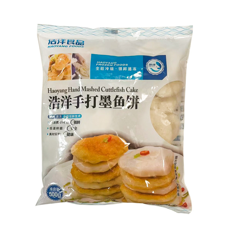 为您提供商品浩洋手打墨鱼饼火锅丸子关东煮冷冻鱼糕烧烤食材花枝饼500g商用的详细介绍,