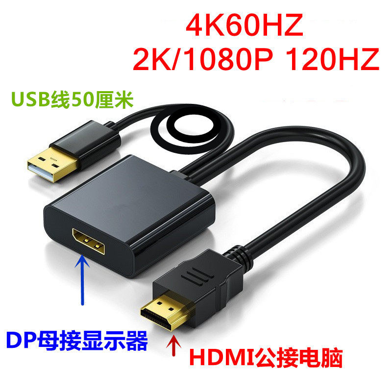 HDTV转DP转接头换器2.0转1.2笔记本电脑线4K显示器2k120公母144HZ由