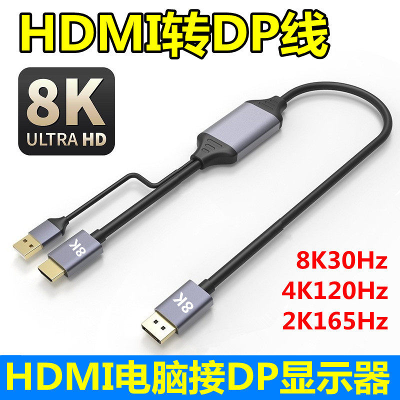 HDTV转DP转接头换器2.0转1.2笔记本电脑线4K显示器2k120公母144HZ