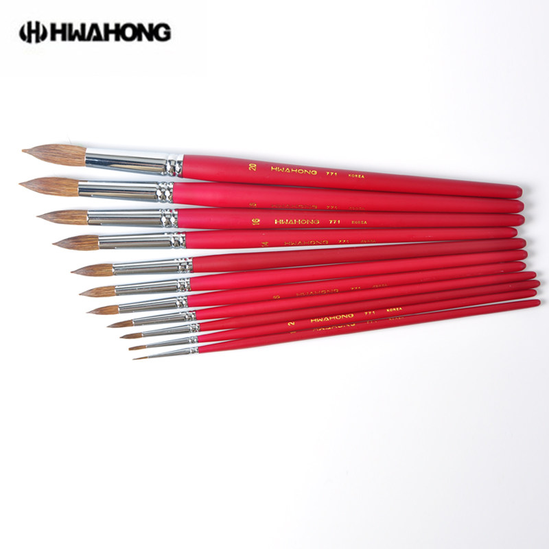 尖头 马鬃毛 771 韩国原产华虹hwahong圆头水彩画笔由