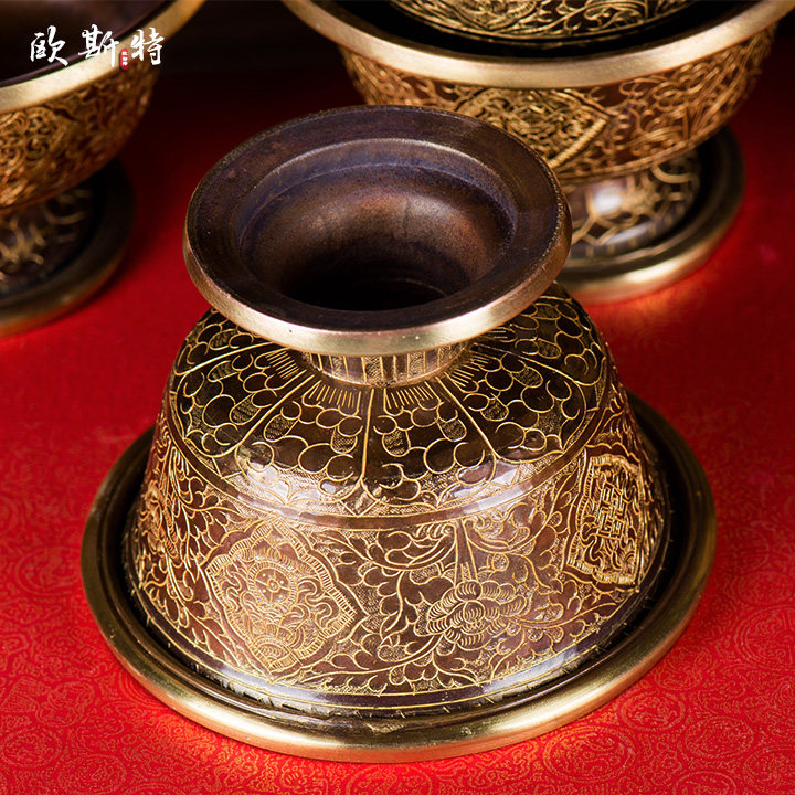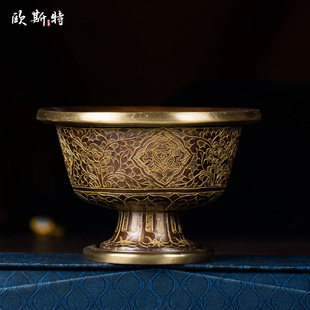 饰用品尼泊尔手工紫铜雕花供水碗 家用高脚供水杯圣水杯 装 欧斯特由