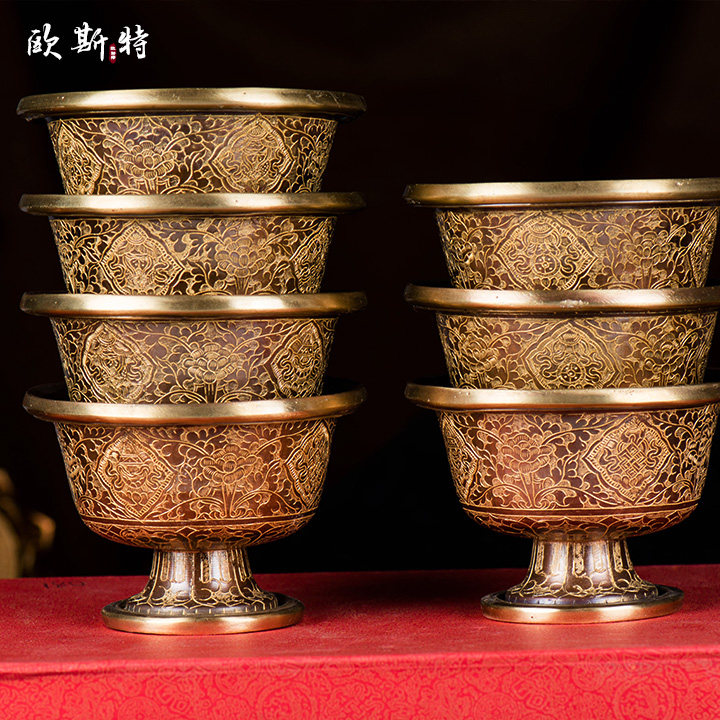 为您提供商品饰用品尼泊尔手工紫铜雕花供水碗 家用高脚供水杯圣水杯 装 欧斯特的详细介绍,