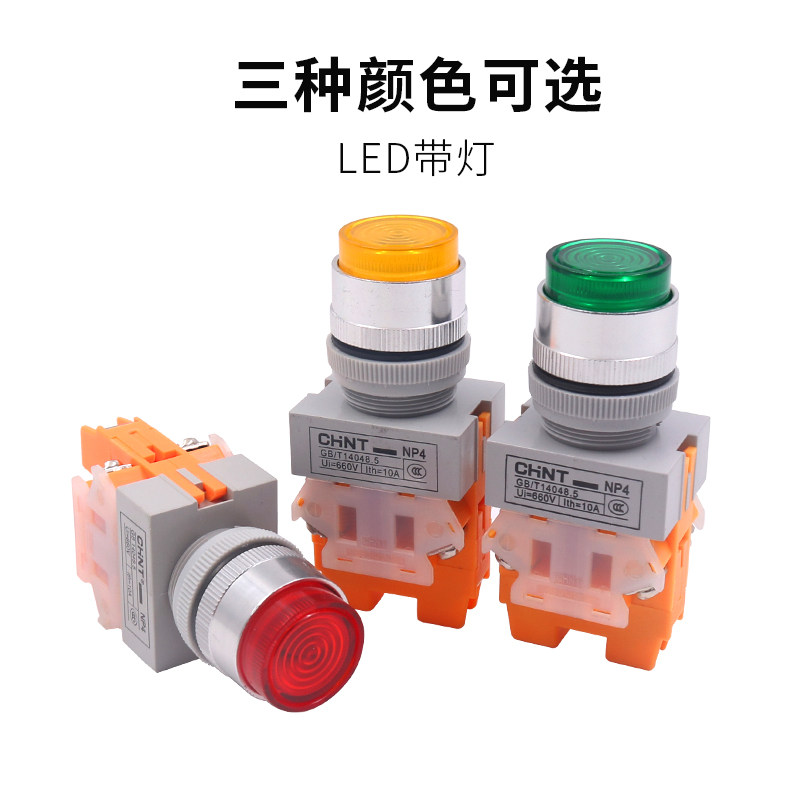 11DN 正泰电源带灯按钮开关自复位DZ自锁Y090 LAY37 NP4 220V 24v
