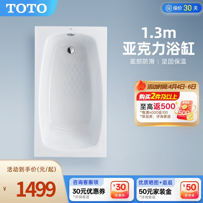为您提供商品1.3米防滑小型浴缸PAY1320P TOTO简约亚克力嵌入式的详细介绍,