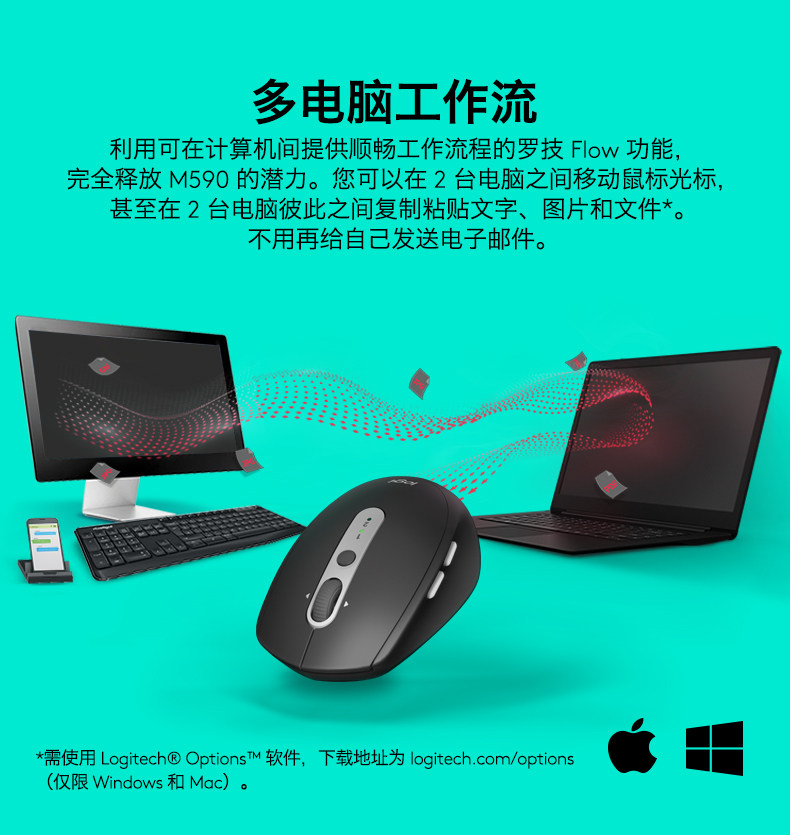 为您提供商品M585无线蓝牙鼠标双模办公商务输入笔记本跨屏Flow侧键 罗技M590的详细介绍,
