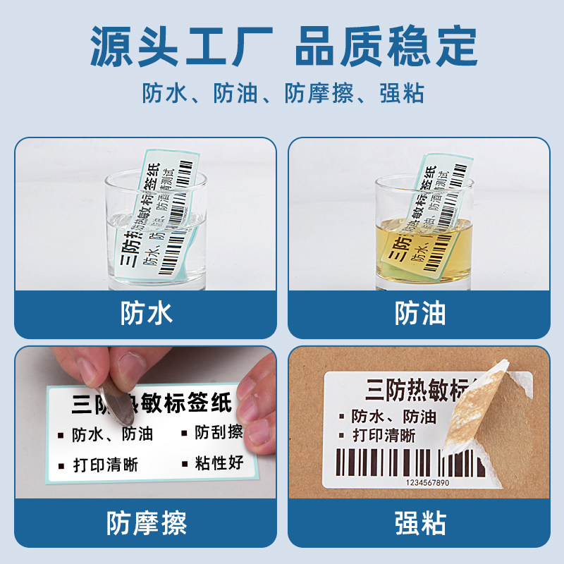 三防热敏标签纸60 80x50 100x100 打印机快递五防奶茶超市称纸价格贴纸防水 150不干胶条码