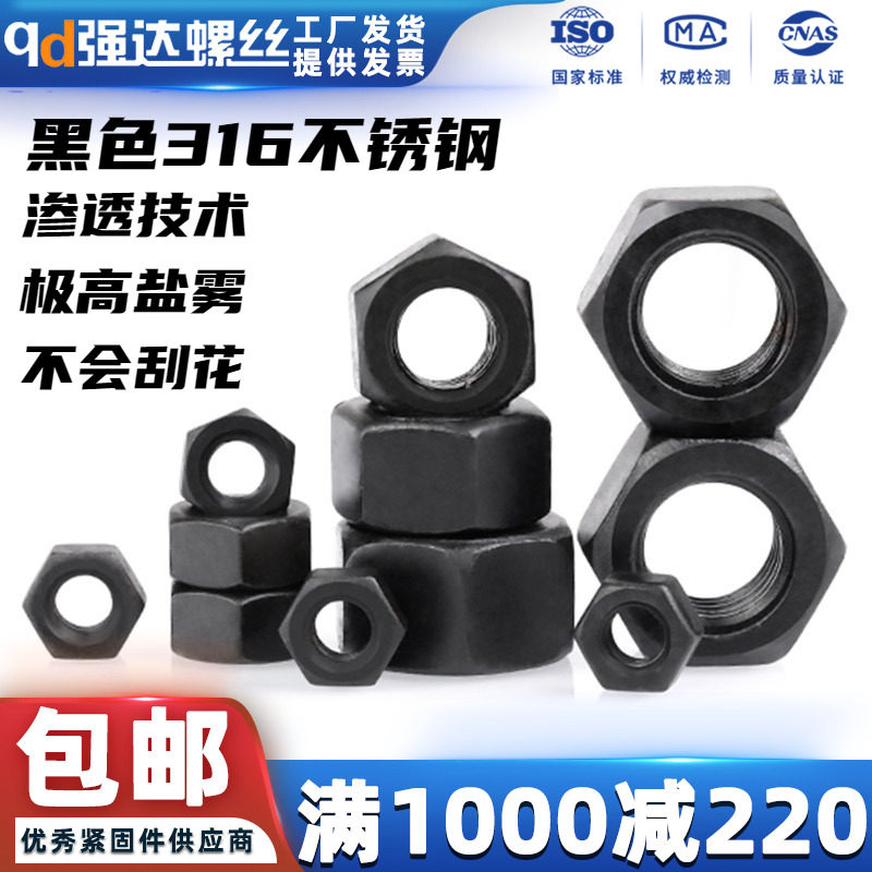 为您提供商品黑色316不锈钢螺母六角螺帽螺丝帽大全M3M4M5M6M8M10M12M14M16M18的详细介绍,